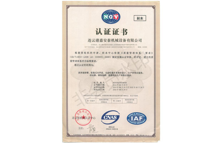 取得了ISO9001質(zhì)量體系認(rèn)證證書