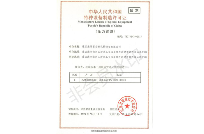 獲得了特種設(shè)備制造許可證(壓力管道)、防爆合格證等多項證書